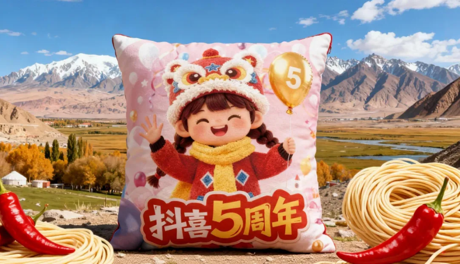 官方抖音直播间现场福袋抽AU999金元宝,富士拍立得和抖喜5周年限定抱枕
